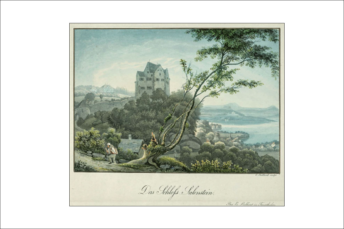Das Schloss Salenstein, um 1845, Ansicht von Osten.