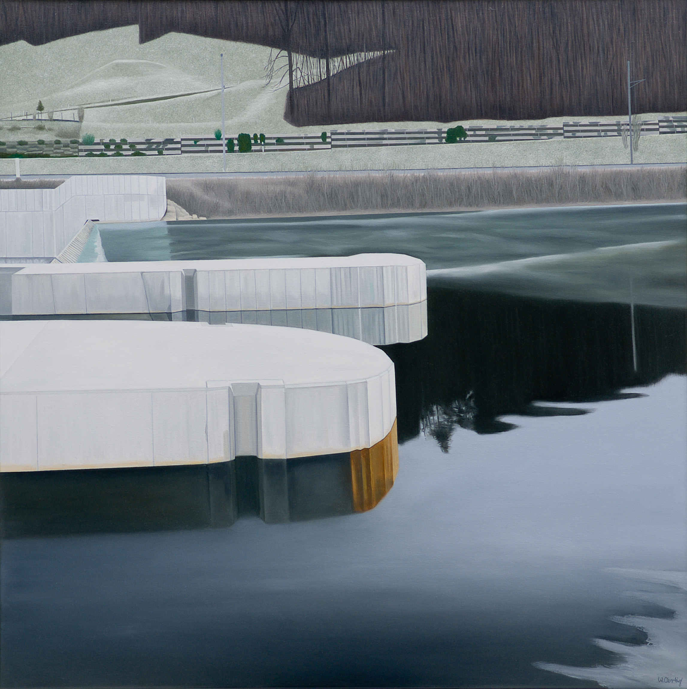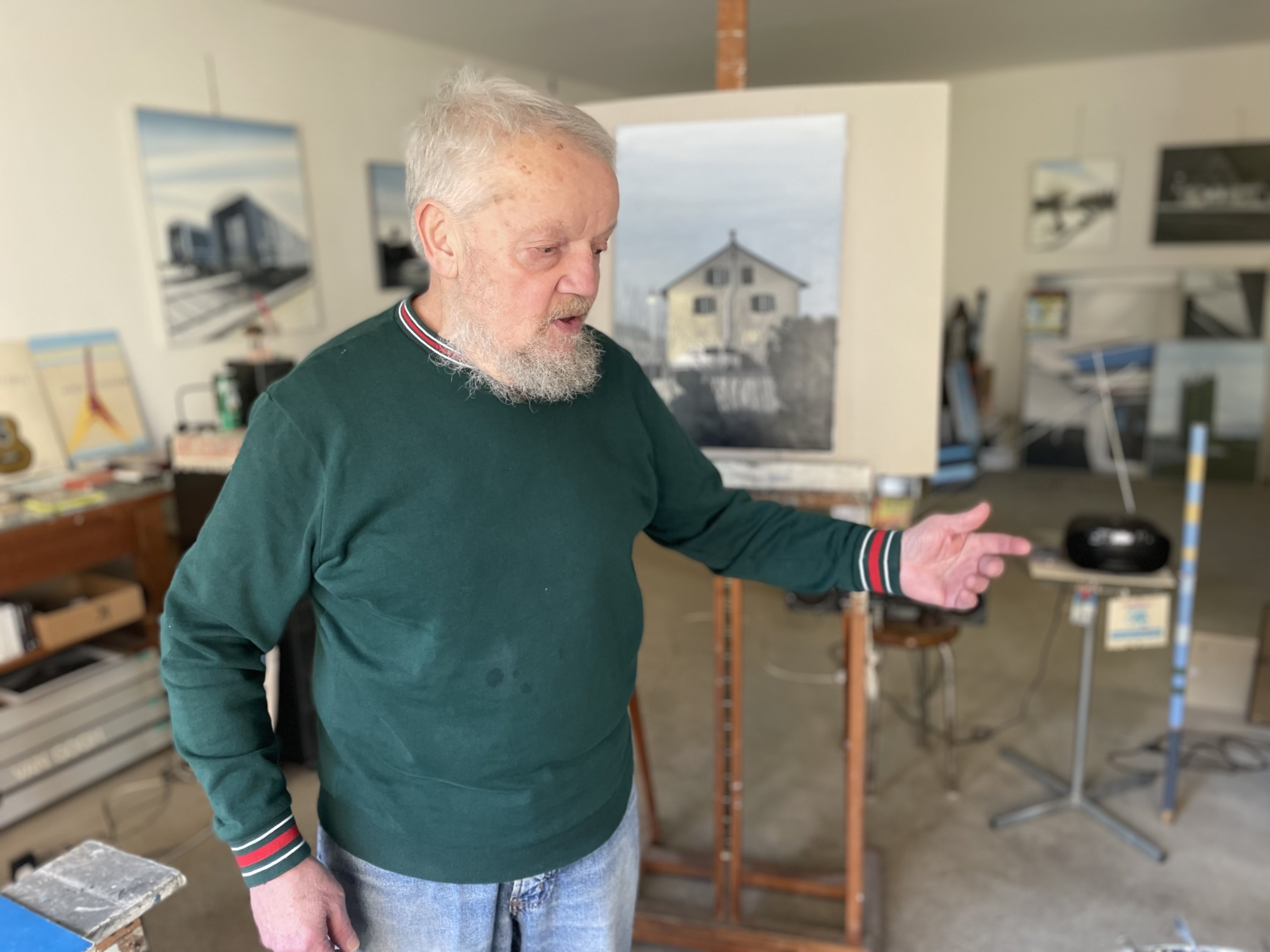 Auch bei dem in Kradolf lebenden Künstler Willi Oertig ist der künstlerische Zugang zur Thur sehr spezifisch: Die Thur spielt bei Oertig vor allem eine Rolle in Kombination mit Technik. „Mich interessieren die Eingriffe, die der Mensch gemacht hat, um der Gesellschaft zu dienen oder zu helfen.“ Der Fluss werde ja eigentlich benutzt für Freizeit und Stromerzeugung. Und so sind es zumeist Stauwehre, Flusskraftwerke und Brücken an der Thur, die der 78-Jährige malt. Die Technik sei da im Vordergrund, das Wasser zwar da, aber: „Es ist keine heile Natur mehr für mich.“