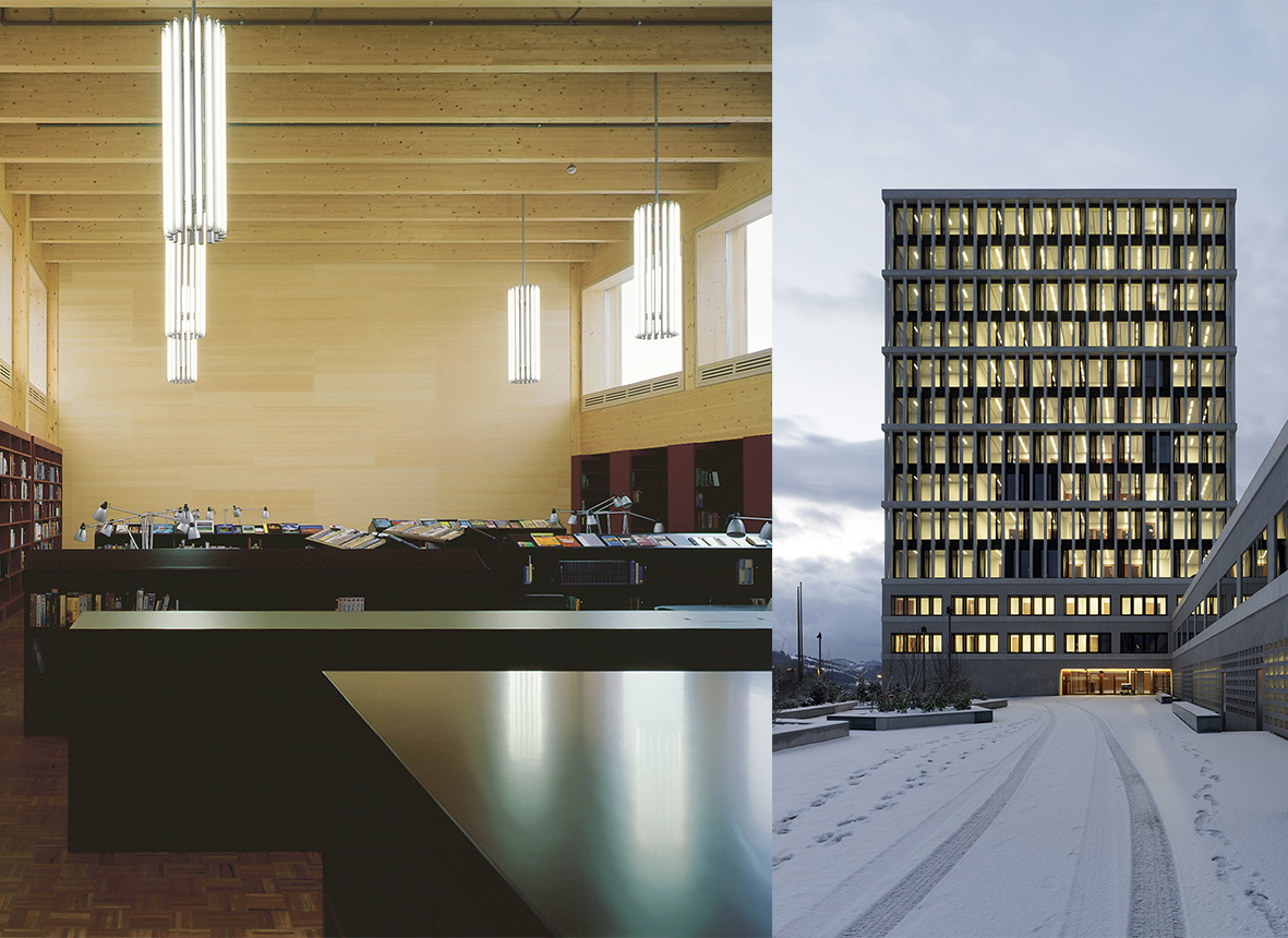Bibliothek der Kantonschule Wil, Bundesverwaltungsgericht, St. Gallen. (Bilder: Roland Bernath, Heinrich Helfenstein)